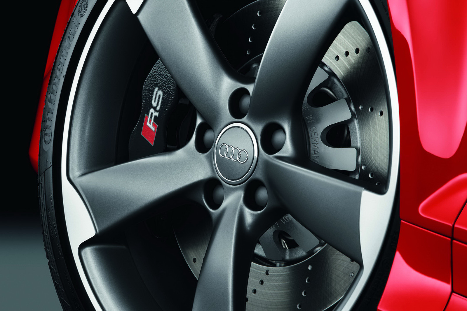 To improve stopping power, the RS3 is fitted with internally ventilated disks measuring 370 millimeters (14.57 inches) in diameter at the front and 310 millimeters (12.20 inches) at the rear.